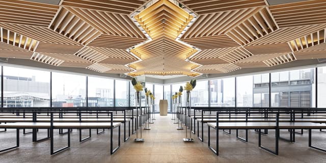 THE GRAND GINZAは、銀座六丁目、「GINZA SIX」の最上階13階に位置する、ハイクラスな会場です。約1,500㎡の広大な空間に、企業のキックオフ、表彰式、懇親会など、あらゆるイベント規模に対応できる大小3つの貸切バンケットと多目的ホールが完備されています。 立地の優位性を最大限に活かした贅沢なロケーションと、正統派フレンチと和の技法を融合させた至高の料理が、イベントの成功を力強くサポートします。 また、東京メトロ銀座駅A3出口より徒歩2分という優れたアクセスも魅力の一つです。洗練されたデザインと上質なサービスにより、参加者にとって記憶に残るプレミアムな時間を実現する唯一無二の会場として、多様なイベントニーズに応えることができます。
