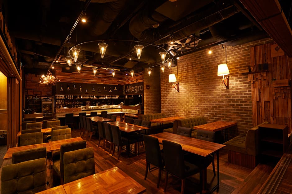 日本橋駅から徒歩1分という抜群のアクセスを誇る「Allegro」。木とレンガを基調とした店内は、天井が高く開放感がありながらも、どこか懐かしく温かい雰囲気に包まれています。着席70名、半立食120名まで対応可能なフロアは、レイアウトの自由度も高く、企業の懇親会や同窓会に最適。ボリューム満点の本格イタリアンと、心地よい空間が、ゲスト同士の会話を自然と弾ませます。