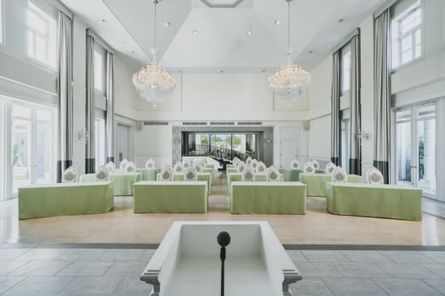南港の海辺に広がる、6,000坪の敷地を誇るゲストハウス。個性の異なる複数の邸宅を貸切で利用でき、大規模な社内表彰式やキックオフに最適です。海と緑に包まれた非日常的なロケーションが、参加者のマインドをポジティブに切り替え、組織の一体感を醸成。充実した音響設備とプロのサポートで、幹事様の理想を具現化します。