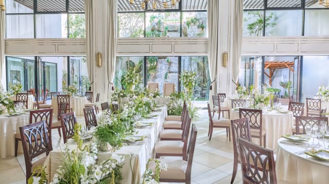主要駅から好アクセスでありながら、水と光が溢れる洗練された非日常空間。リゾート邸宅のような趣がある会場は、カジュアルな懇親会から品格ある表彰式まで幅広く対応します。水辺のテラスを活かした開放的な演出と、厳選素材を活かした美食が会話を弾ませ、チームの円滑なコミュニケーションと一体感の醸成をサポートします。